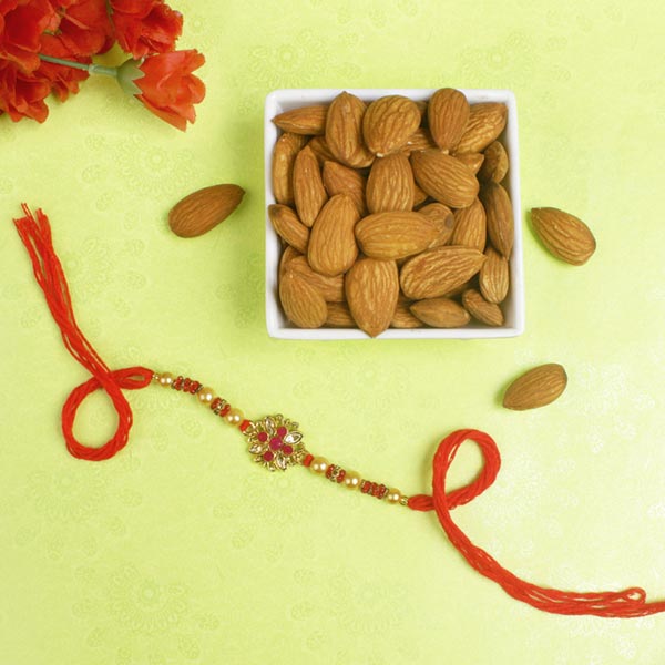 Appealing Pink Diamond Rakhi with Almond Nuts For UK