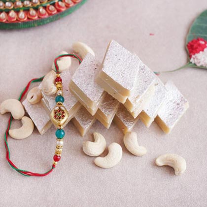 1 pearl Rakhi which is embellished with attractive stones, pearls and beads.