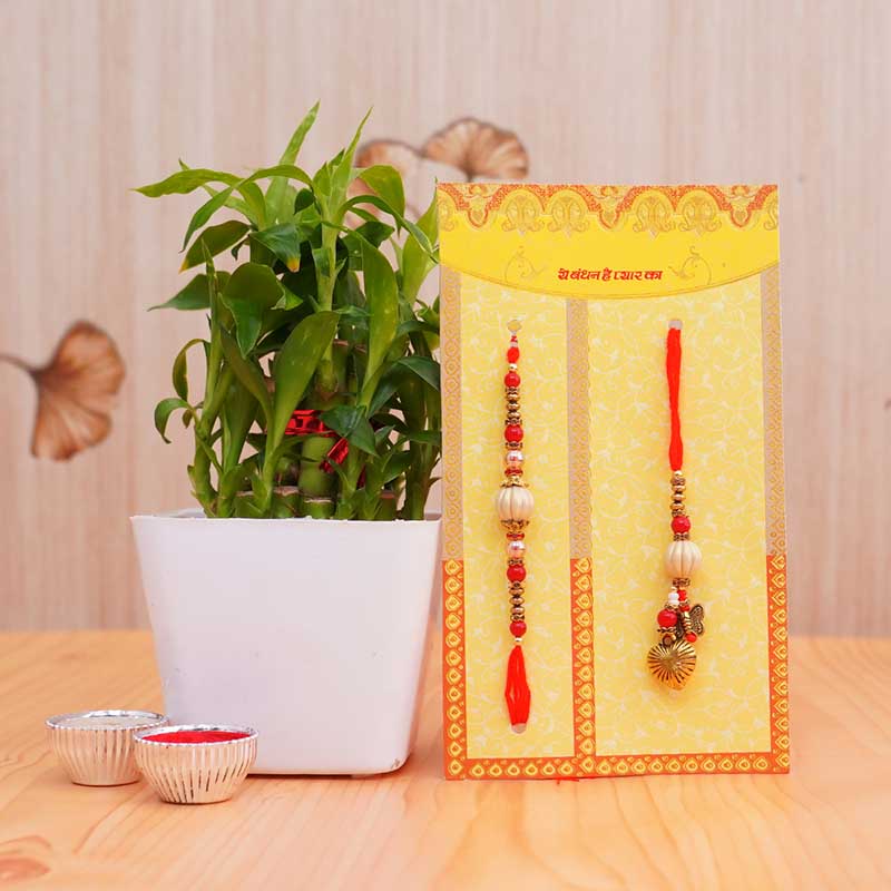 Set of Bhaiya Bhabhi Rakhi with Lucky Bamboo N Ferrero Rocher