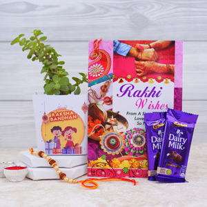 Designer Bhaiya Bhabhi Rakhis with Jade Plant N Chocolates