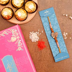 Product Details: One Evil Eye Designer Rakhi, This designer rakhi highlights an evil eye for spiritual protection, Haldiram Kaju Katli, Weight- 400 gms, Complimentary Roli Chawal packed in a small card, Beautifully packed in Sneh Box