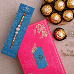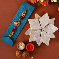 Product Details One Kalash Rudraksha Rakhi, This ethnic rakhi displays kalash & rudraksha for an auspicious look, Haldiram Kaju Katli, Weight- 250 gms, Complimentary Roli Chawal packed in a small card, Beautifully packed in Sneh Box