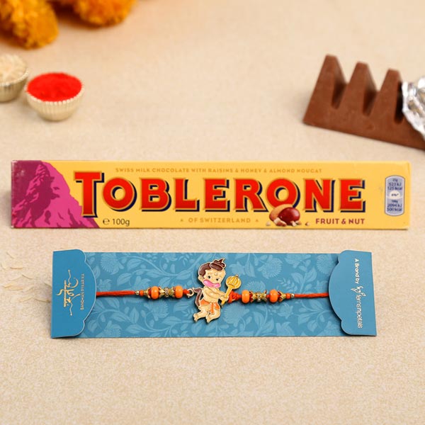 Product Details: One Bal Krishna Rakhi, Bal Krishna Rakhi is categorically designed for kids who are fond of devotional cartoon characters, This Rakshabandhan, gift your brother a classic designer Rakhi, Toblerone Chocolate Milk Bar, Weight- 100 gms,