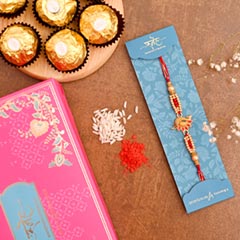 Product Details: , One Peacock Designer Rakhi, This designer rakhi showcases beautiful peacock for an eye catching look, Complimentary Roli Chawal packed in a small card, This Rakhi is packed in a beautiful Sneh envelope