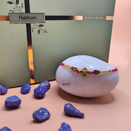 Beautifully Crafted Rakhi with Pista Burfi