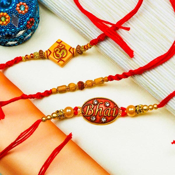 Set of 3 Rakhis ( 1 Bhai Rakhi, 1 Om Rakhi & 1 Beads Rakhi )