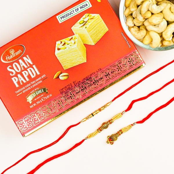 Bhaiya Bhabhi & Pearl 3 Rakhis With Soan Papdi & Cashews