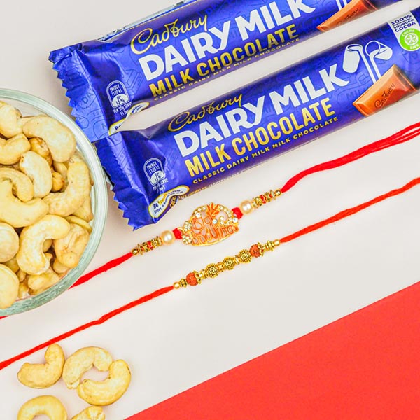 Big Brother & Rudraksh Combo Of 2 Rakhis With Dairy Milk & Dryfruits