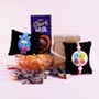 Product Details: • Captain America Kids Rakhi and Donut foodie Rakhi • 20 Candies packed in a golden designer box • Cadbury Dark Milk Salted Caramel chocolate of 72gm • One pack of Haldiram Matthi of 225gm • Roli and Chawal with containers are included