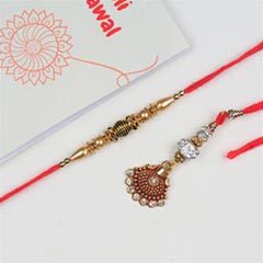 Dancing Peacock Jhumki Lumba Rakhi Set With Kaju Katli