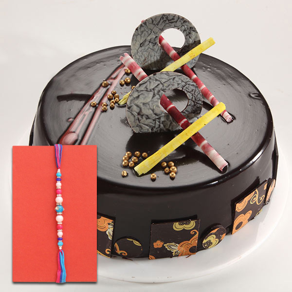 Product Overview • Rakhi: Single beaded Rakhi • Flavor of Cake: Chocolate • Weight: 500 gms • Knife is inclusive with cake • A packet of roli and rice is complementary with the combo Let express your gratitude and love towards your sweetheart brother by bestowing your love on him with the incredible Rakhi combo. Mouthwatering cake and beautiful Rakhi will surely leave a long-lasting impression on your brother and add so much joy in the celebration of Raksha Bandhan. Place your order soon and celebrate the festival with happiness.