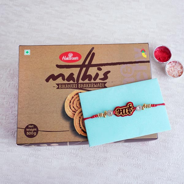 Rakhi Details: • Rakhi Type: Designer Bhai Rakhi • Set Type: Single Rakhi • Recipient: Brothers • Color: Multicolored • Material Used: Fabric, beads, and silk threads • A packet of Roli and Chawal with containers Cookies • A pack of Haldiram Bhakharbadi cookies of 500 gm