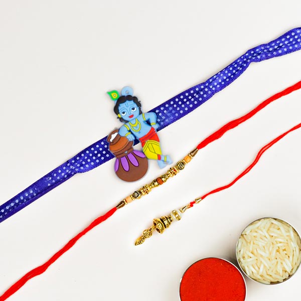 Set of 3 Rakhis ( 1 Bhai Rakhi & 1 Lumba Bhabhi Rakhi With 1 Kids Cartoon Rakhi)