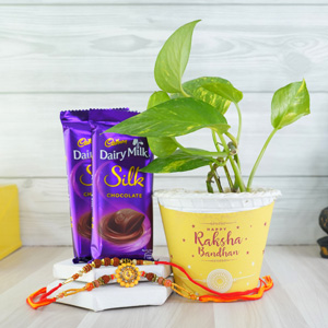 Designer Bhaiya Bhabhi Rakhis with Jade Plant N Chocolates