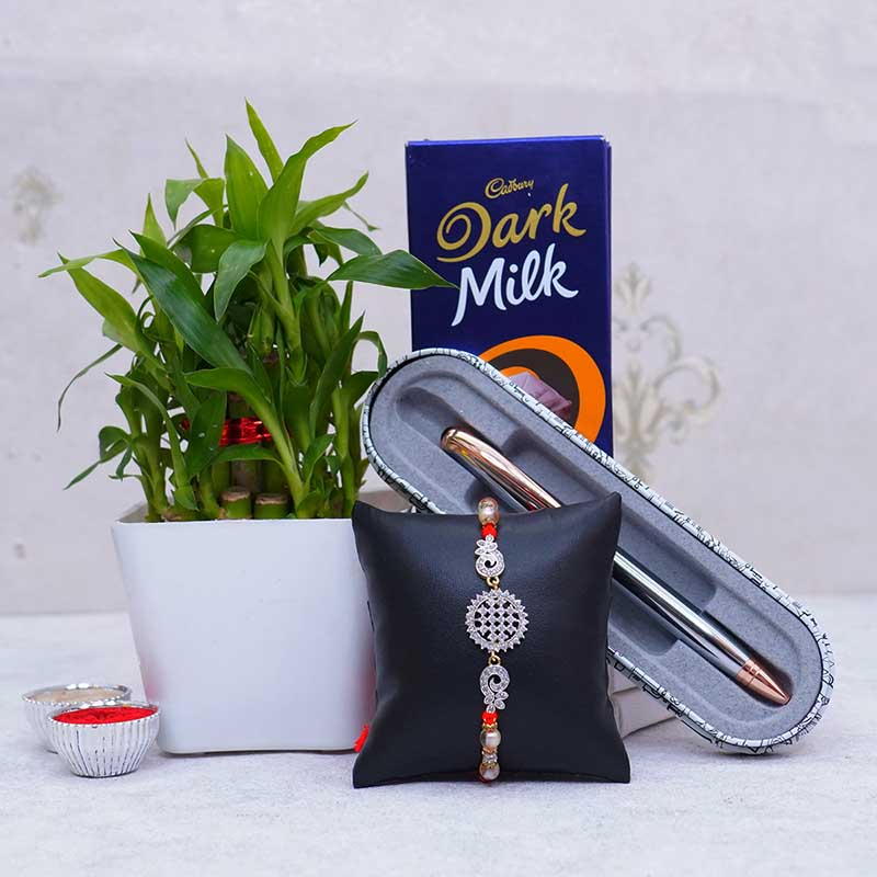 Designer Bhaiya Bhabhi Rakhis with Jade Plant N Chocolates
