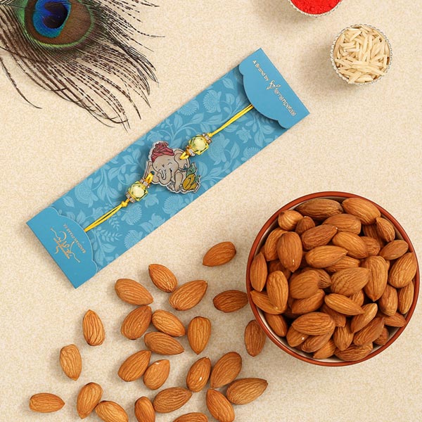 Product Details: One Bal Ganesha Kids Rakhi, Bal Ganesha Rakhi is categorically designed for kids who are fond of devotional cartoon characters, This Rakshabandhan, gift your brother a classic designer Rakhi, Haldiram Kaju Katli, Weight- 400 gms,