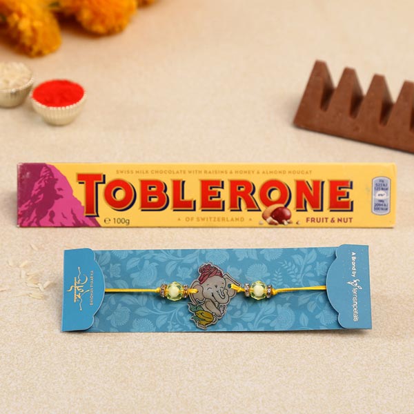 Product Details: One Designer Pearl Rakhi, This designer rakhi showcases pearl detailing for an ethnic look, Toblerone Chocolate Milk Bar, Weight- 100 gms, Complimentary Roli Chawal packed in a small card, Beautifully packed in Sneh Box
