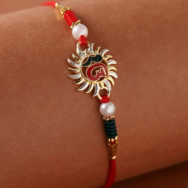 Trendy Pearl Rakhi with Assorted Chocolates in Box N Card