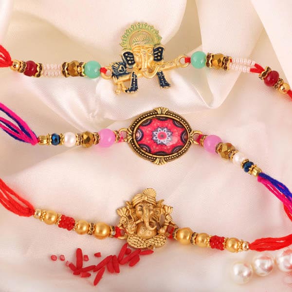 Blue Orb Pearl And Lumba Rakhi Set With Lindt