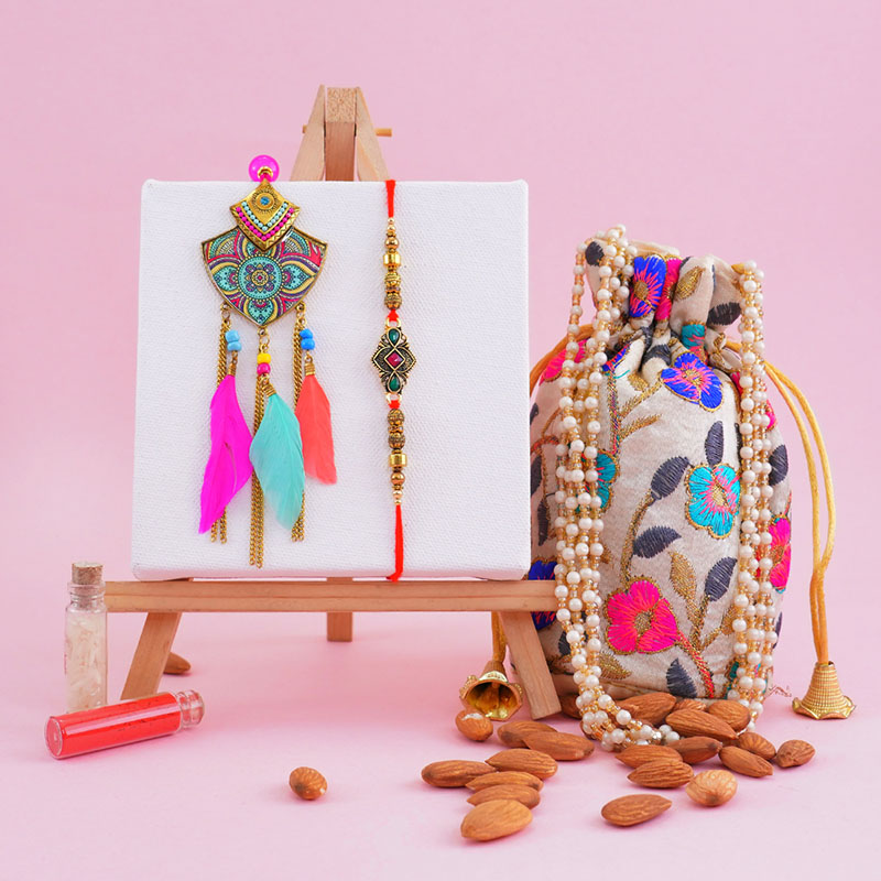 Dry Fruits in Potli with Combo of Bhaiya Bhabhi Rakhi