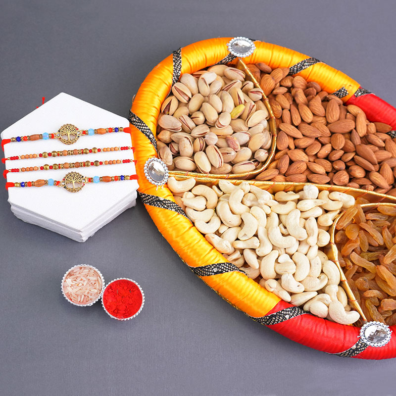 set of Om Rakhi N Pearl Rakhi with Dry Fruits