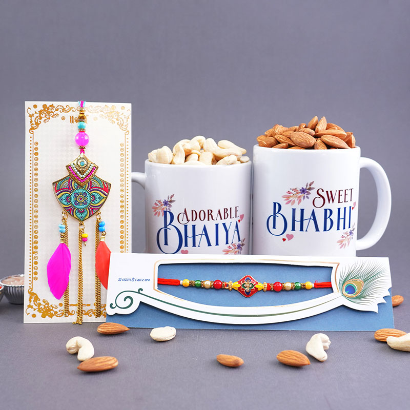 Dry Fruits with Bhaiya Bhabhi Rakhi N Mugs Gift Hamper
