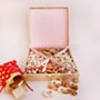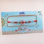 Product Details: • One designer Bhaiya Rakhi and One designer Lumba Rakhi for Bhabhi • 100gm of Assorted chocolates packed in a designer potli • 100gm of Cashews • 100gm of Almonds • 100gm of Walnuts • 100gm of Pistachios • A designer dryfruit box with dryfruits • Roli and chawal with containers are also included