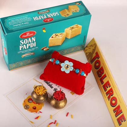 Auspicious Evil Eye Designer Rakhi And Toblerone Chocolate