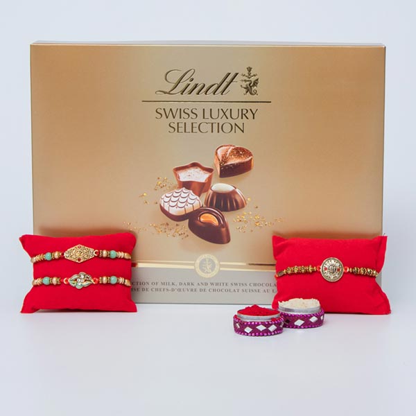 Ethnic Aum & Shree Beads Rakhi Set with Lindt Swiss LuxuryFor UK