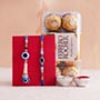Product Details: • One Evil Eye Bhaiya Bhabhi Rakhi Set • One pack of 16 pieces of Ferrero Rocher chocolates • Roli chawal with containers are also included