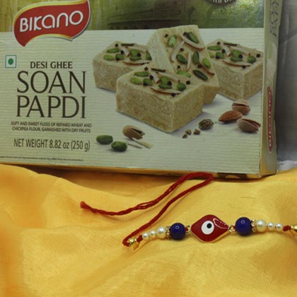 Blue Orb Pearl And Lumba Rakhi Set With Soan Papdi