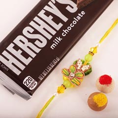 Green Pearl And Lumba Rakhi Set With Kaju Katli
