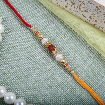 Navrattan Bracelet Pearl Rakhi And 3 Pcs Ferrero Rocher