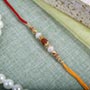 Blue Pearl And Lumba Rakhi Set With Kaju Katli
