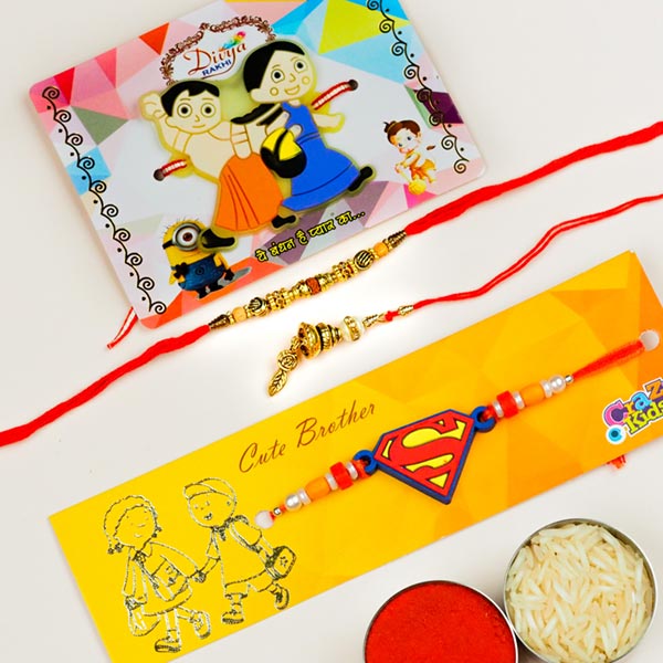 Set of 4 Rakhis (1 Bhaiya Rakhi, 1 Lumba Bhabhi Rakhi & 2 Kids Cartoon Rakhi)