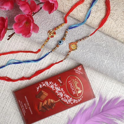 Family Rakhi Set With Lindt Chocolate Bar - For Europe