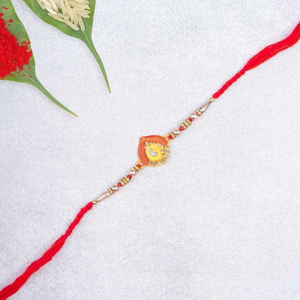 Orange Pearl And Lumba Rakhi Set With Lindt