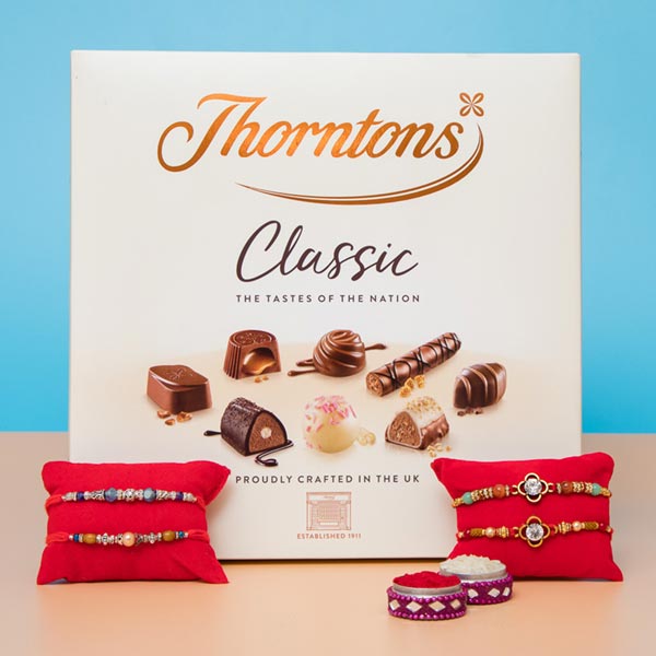 Four Designer Rakhi Set with Premium Chocolate Box For UK