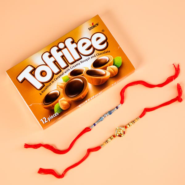 Golden Ganesha Rakhi Set with Hazelnuts Chocolates - For Europe