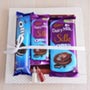 Rakhi •Rakhi Type: Golden Rakhi •Set Type: Set of 1 •Recipient: Brothers •Color: Multicolored •Material Used: Gold-platted metal, beads, and silk threads Chocolates •1 Oreo Biscuits of 120gm •1 Dairy Milk Oreo of 130gm •1 small Dairy Milk Silk Oreo of 60gm Other Items: •A packet of Roli and Chawal with containers are also included
