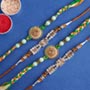 Product Overview: • Rakhi Type: Two floral stone Rakhis and two AD stone Rakhis • Set Type: Set of 4 Rakhi • Recipient: Brothers • Color: Multicolored • Material Used: Stones, AD, beads, gold-plated metal, and silk thread • Roli & Chawal pack and containers are included with Rakhi set