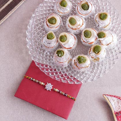 1 Pearl Rakhi which is decorated with pearls, beads and stones.