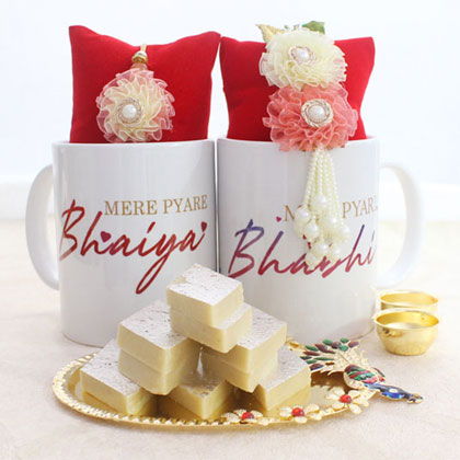 Designer Rakhi for Brother with Chocolates N Pooja Thali