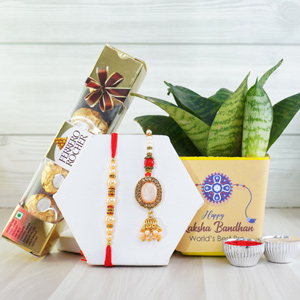 Jade Plant N Pearl Rakhi with Chocolate Combo