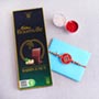 It contains: • Rakhi Type: Sikh Rakhi • Set Type: Single Rakhi • Color: Gold and Red • A packet of Roli and rice with containers Chocolate • 80 gm Raisin and Nut Bournville Chocolate