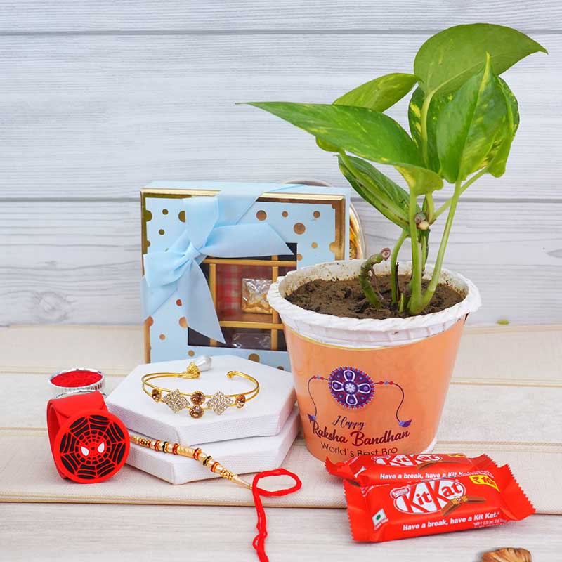 Kids Rakhi N Bhaiya Bhabhi Rakhi with Money Plant Combo