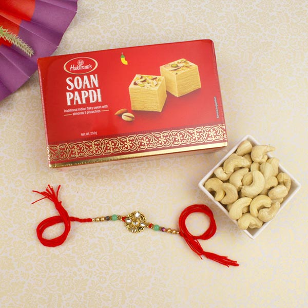 Kundan Diamond Rakhi with Sweet & Cashew Nuts For UK