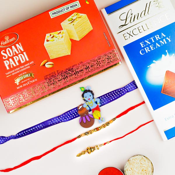 Set of 3 Rakhis (1 Bhaiya Rakhi, 1 Lumba Bhabhi Rakhi & 1 Kids Cartoon Rakhi)