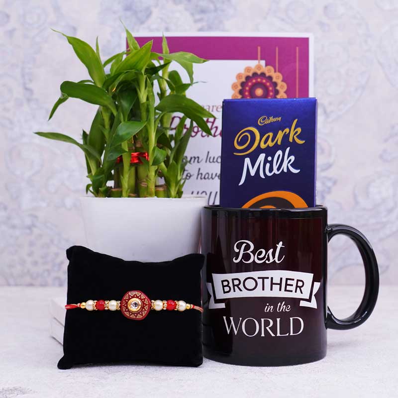 Lucky Bamboo with Pearl Rakhi N Mug Combo