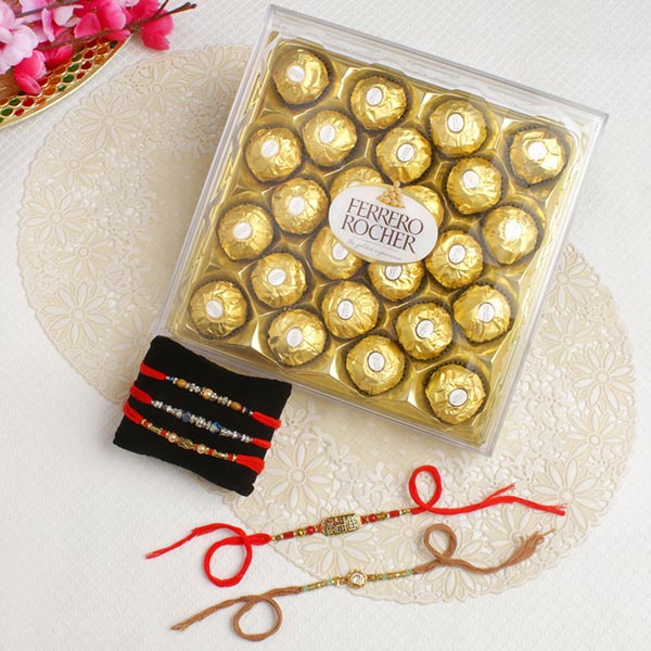 Magnificent Family Rakhi Set with Ferrero Rocher Chocolate Hamper For UK